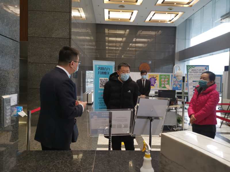 2月29日,京能集團黨委書記、董事長姜帆到金泰物業公司CBD國際大廈、金泰國際大廈項目檢查指導疫情防疫工作。